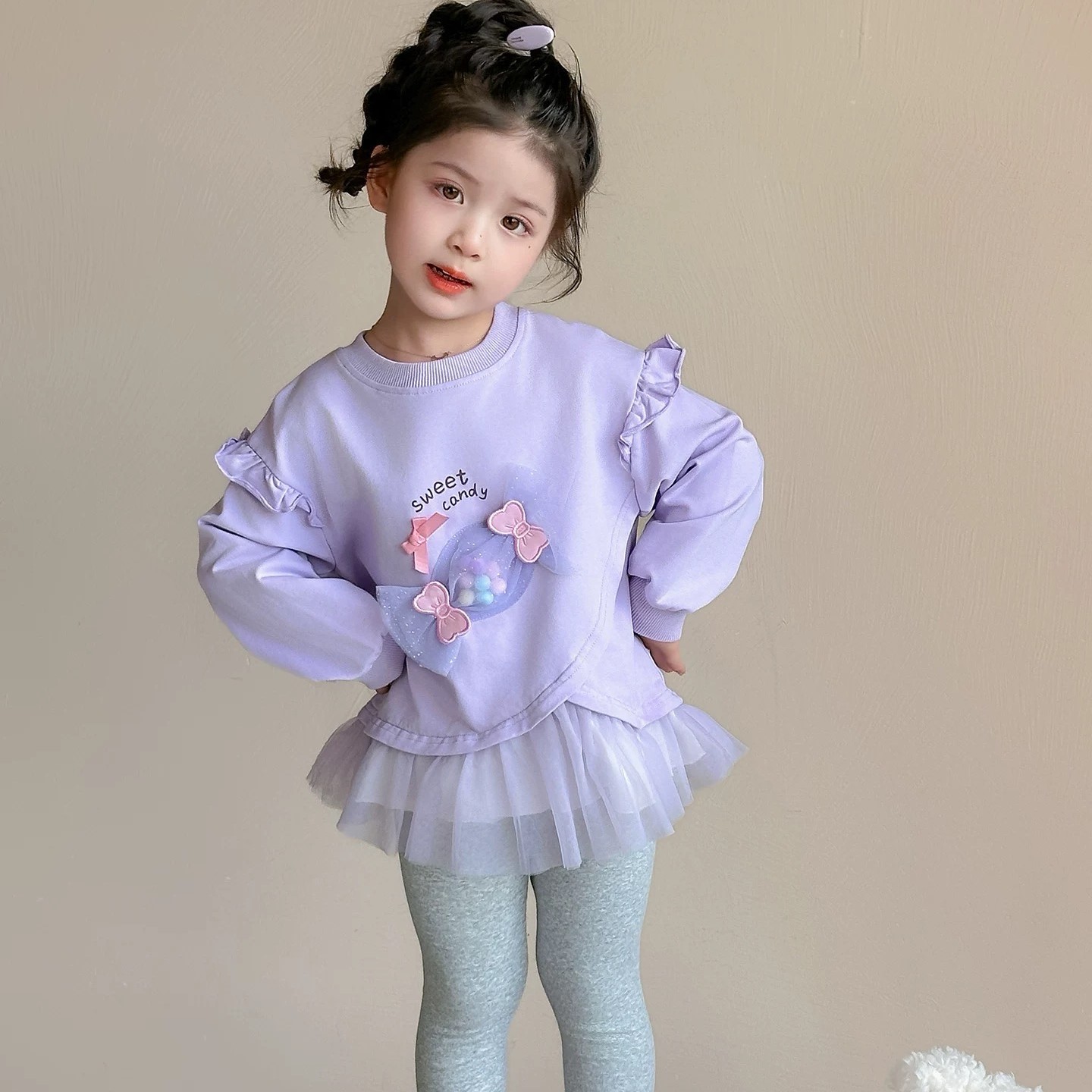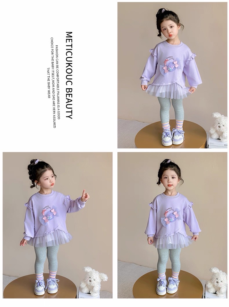 秋款韓版可愛糖果網紗衣裙+內搭褲二件套裝(紫色)
