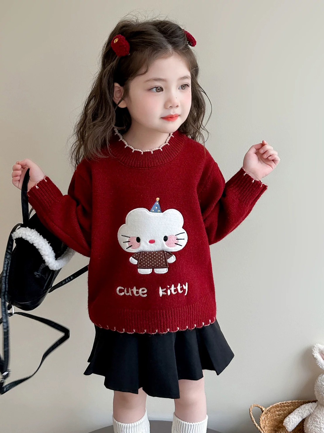 秋冬款韓版針織可愛雲朵圖案毛衣/上衣(紅色)